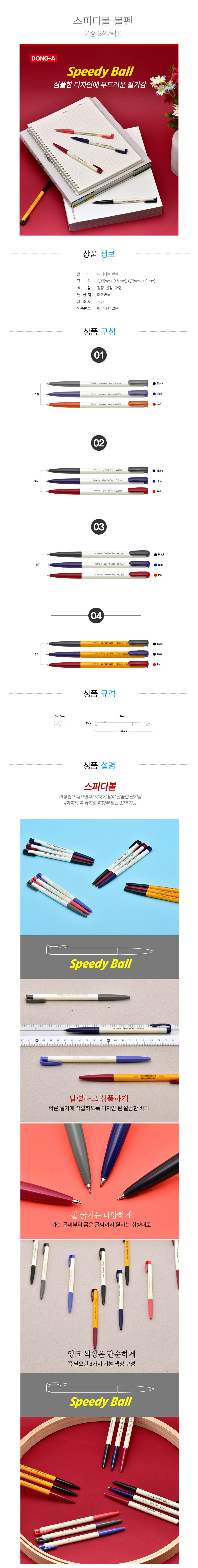 | 품명 및 모델명 | [동아] 스피디볼 볼펜(4종 3색/택1) |