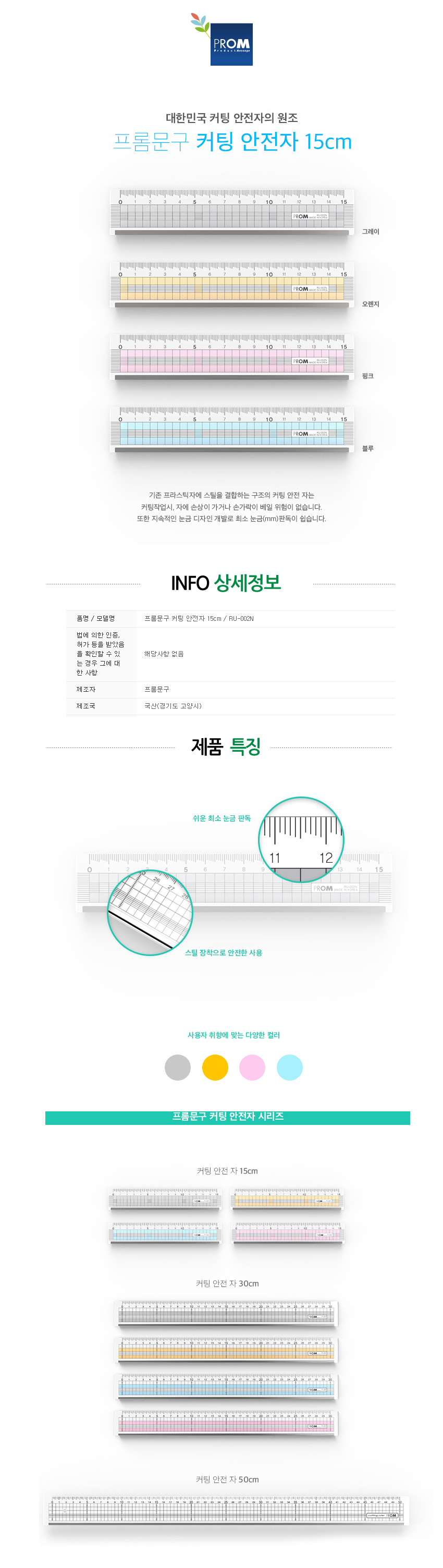 | 품명 및 모델명 | [프롬] 컷팅 방안자(1개) / 15Cm |