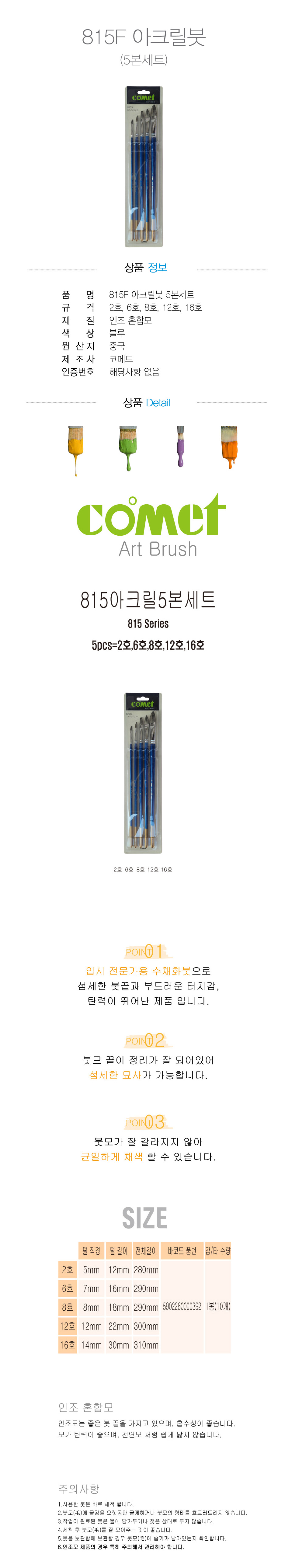 | 품명 및 모델명 | [코메트] 815F 아크릴붓 5본세트 |
