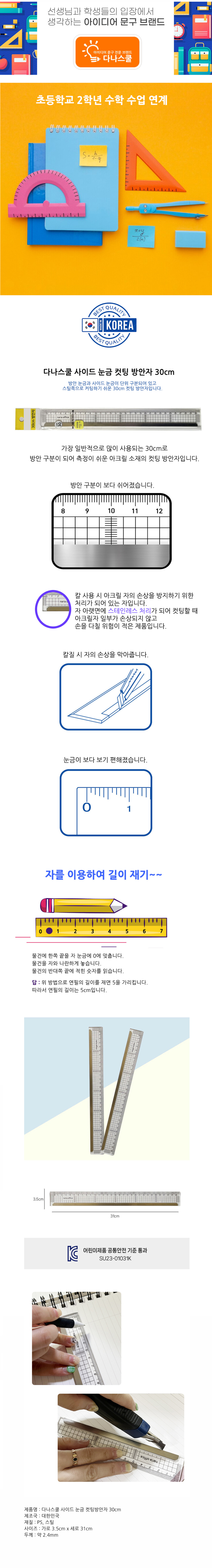 | 품명 및 모델명 | 다나스쿨 프리미엄 초등 2학년 수학 30cm 컷팅 방안자 |