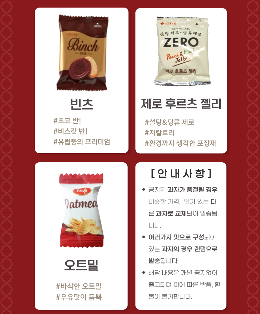 | 식품의 유형 | 과자 사탕 젤리 초콜릿 츄잉캔디 외 기타 |