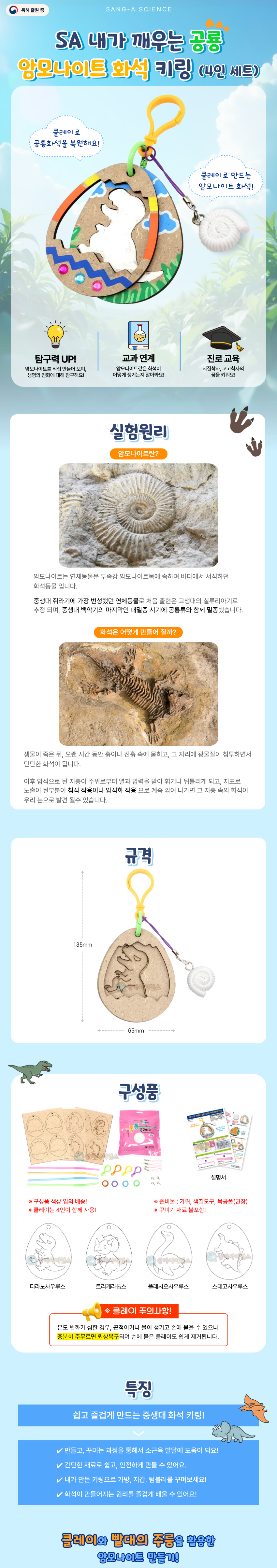 | 품명 및 모델명 | [과학키트]SA 내가 깨우는 공룡 암모나이트 화석 키링(4인 세트) |