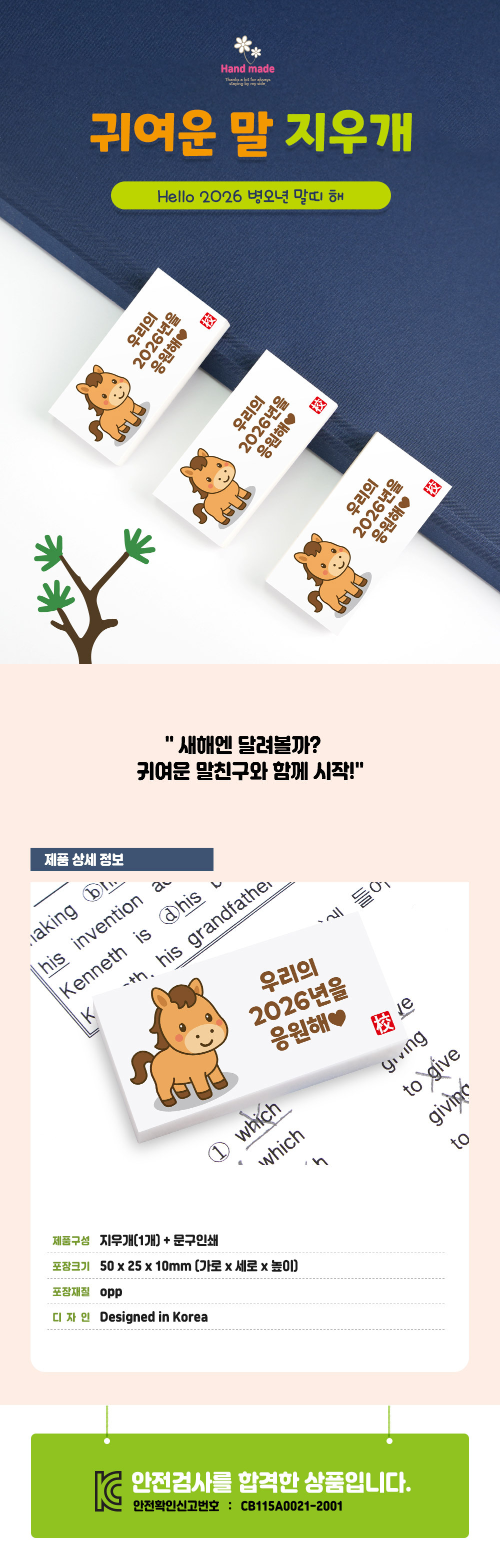 | 품명 및 모델명 | 2026 병오년 말띠해 지우개 |