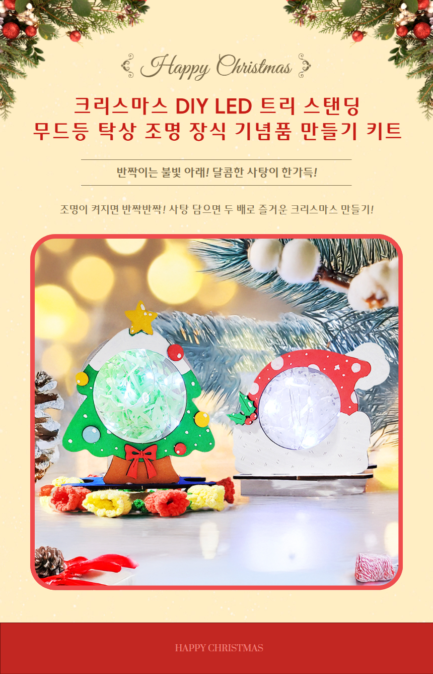 크리스마스 DIY LED 트리 스탠딩 무드등 탁상 조명 장식 기념품 만들기 키트