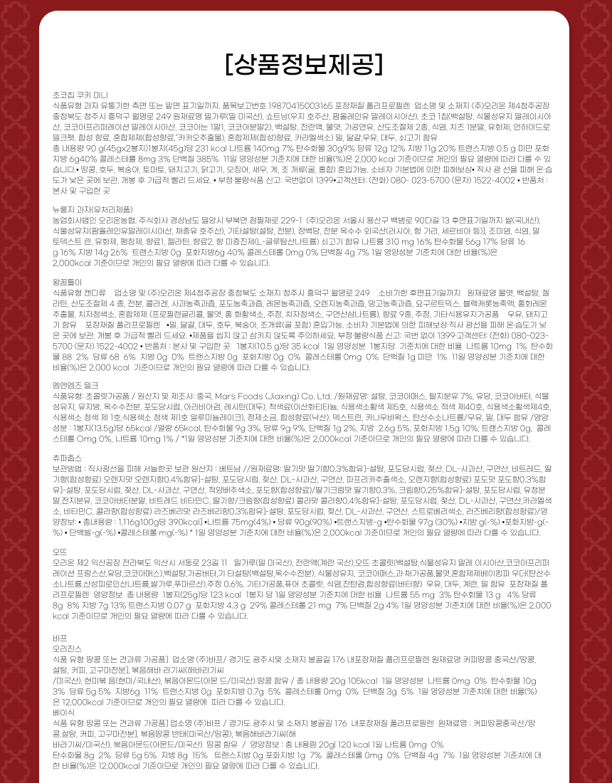 | 영양성분 | 상품상세 참조_구매 시 상품정보고시안내문 동봉 |