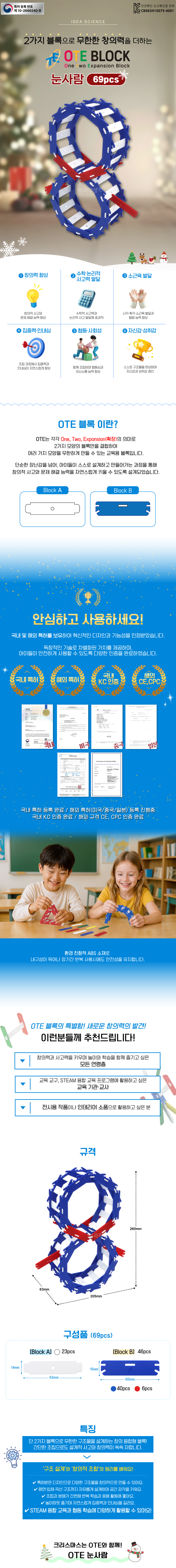 | 품명 및 모델명 | [과학키트] 창의력 두뇌개발 OTE Block 눈사람(69pcs)(3D뷰 이미지제공) |