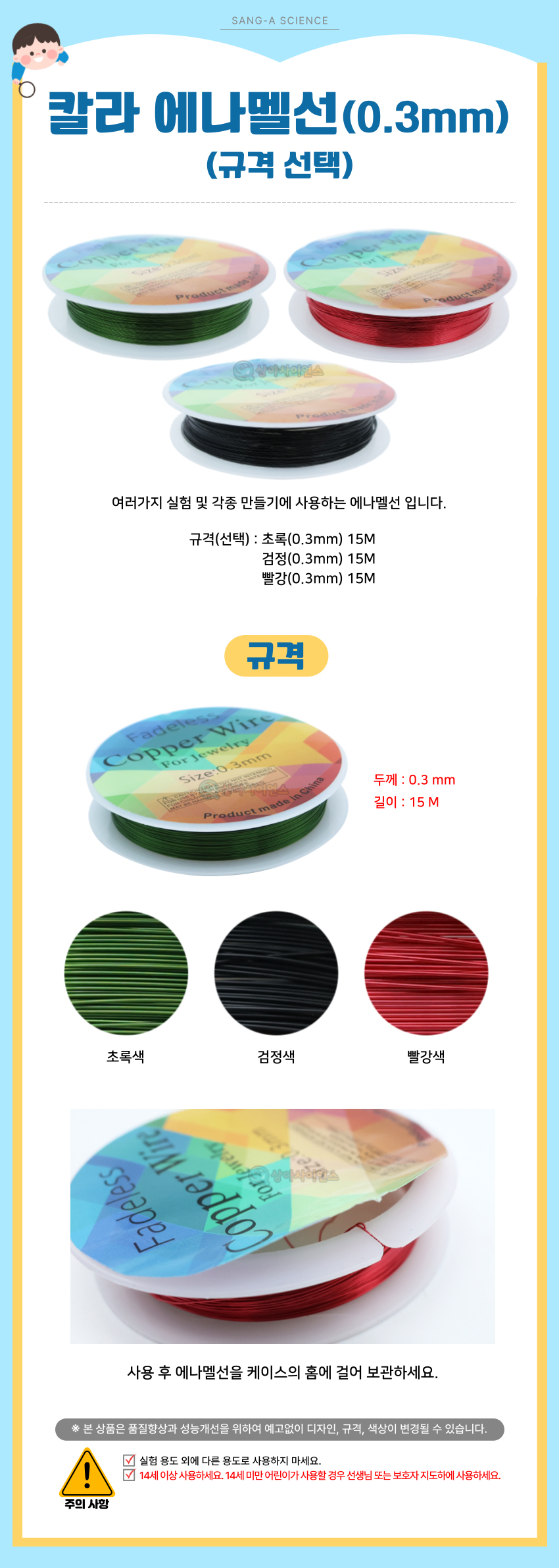 | 품명 및 모델명 | [과학키트] 칼라 에나멜선(0.3mm)(규격 선택)(SAS11582) |